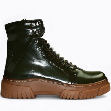 Skórzane zielone botki damskie Hirenia