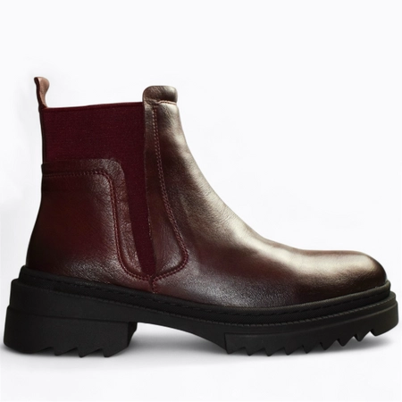 SKÓRZANE BORDOWE BOTKI DAMSKIE INORITH