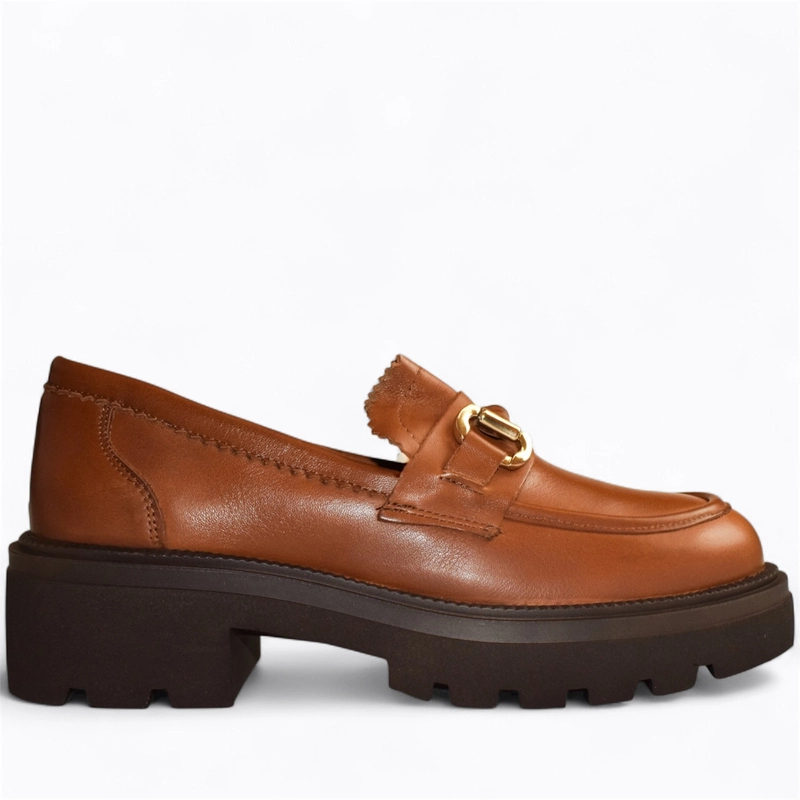 Skórzane rude półbuty damskie Elvisia