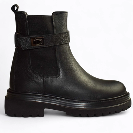 SKÓRZANE CZARNE BOTKI DAMSKIE MEGALIA