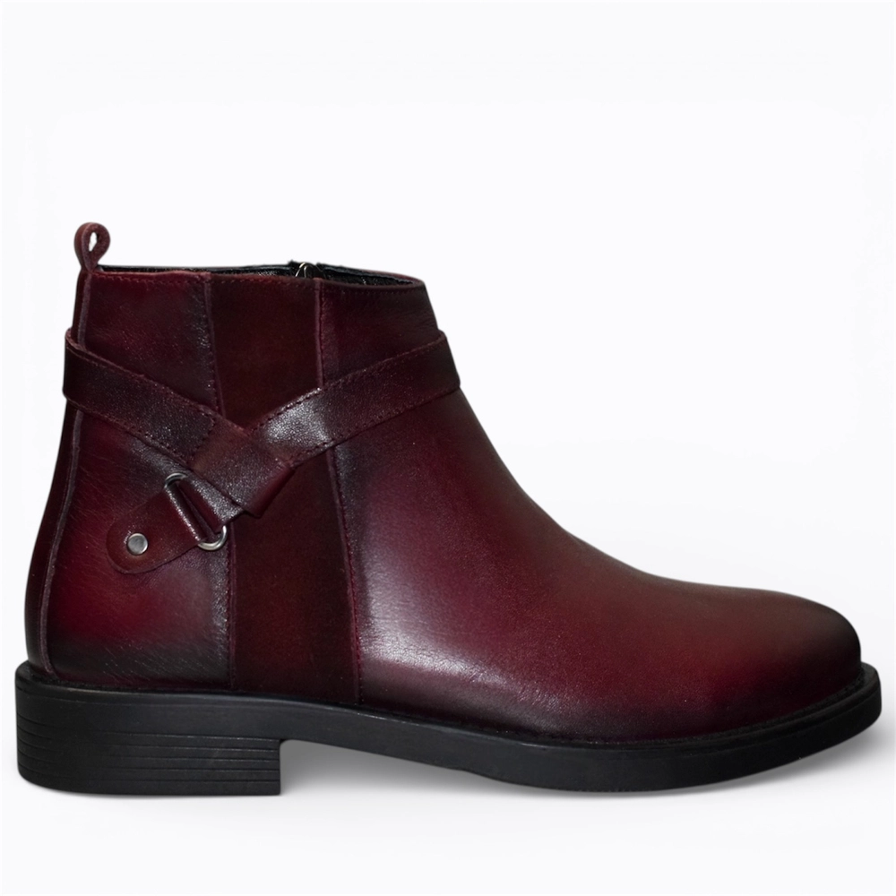 Skórzane bordowe botki damskie Zinoria