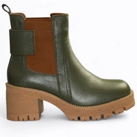 SKÓRZANE OLIWKOWE BOTKI DAMSKIE TIRELIS