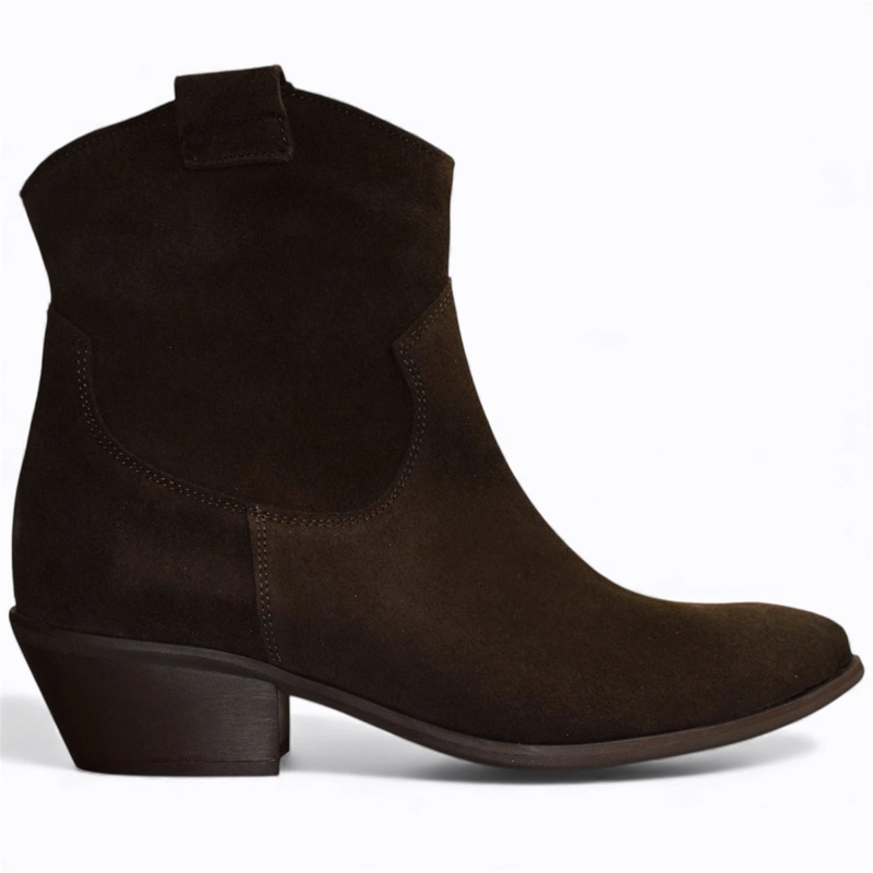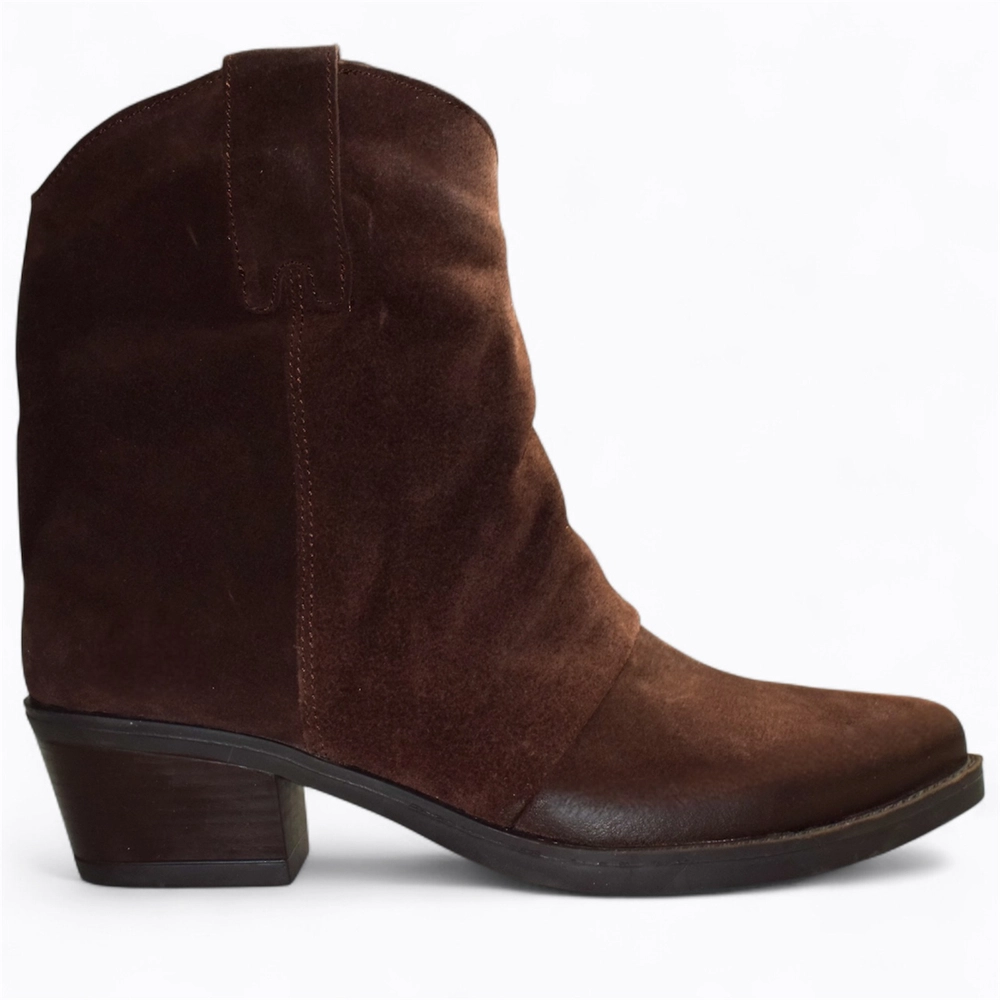 Skórzane czekoladowe kowbojki damskie Emeldia