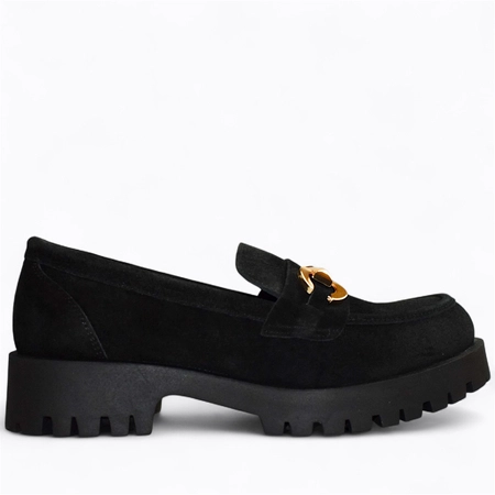 Skórzane czarne półbuty damskie Lesmari