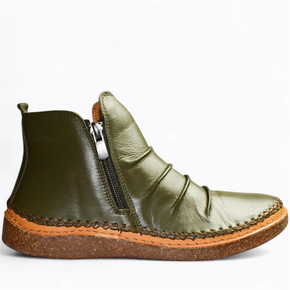 Skórzane zielone botki damskie Izmaria