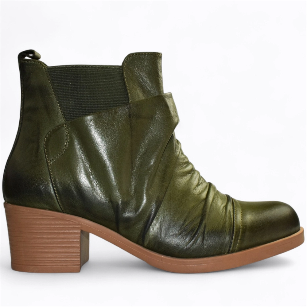 Skórzane zielone botki damskie Hirenia