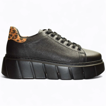 Przedstawiamy Czarne sneakersy z printem w panterę LEXERIA, idealne obuwie dla osób, które cenią sobie połączenie komfortu i nowoczesnego designu. Te sneakersy wyróżniają się unikalnym printem w panterę, który doda charakteru każdej stylizacji. wykonane z wysokiej jakości materiałów, zapewniają nie tylko stylowy wygląd, ale także wygodę w codziennym użytkowaniu.