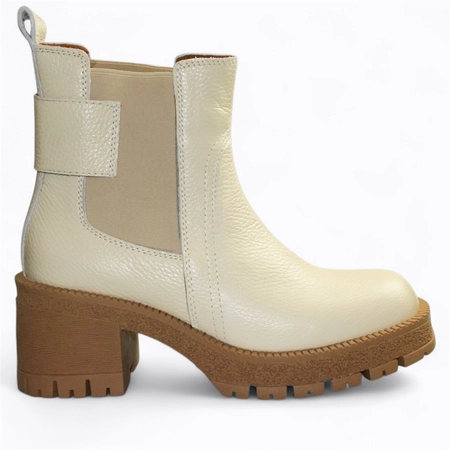 Skórzane beżowe botki damskie Sulemia
