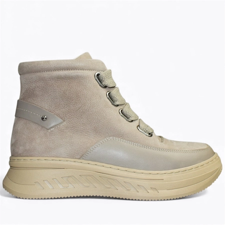 SKÓRZANE BEŻOWE TRZEWIKI DAMSKIE OLVARIA