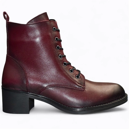 Skórzane bordowe trzewiki damskie Hesline
