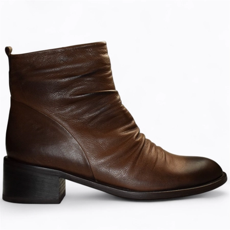 SKÓRZANE BRĄZOWE BOTKI DAMSKIE ZENETHA