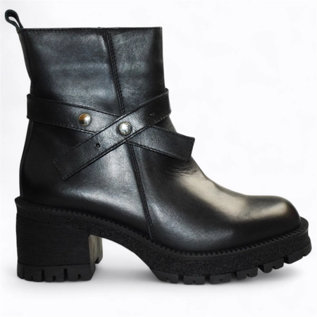 SKÓRZANE CZARNE BOTKI DAMSKIE EURIANA