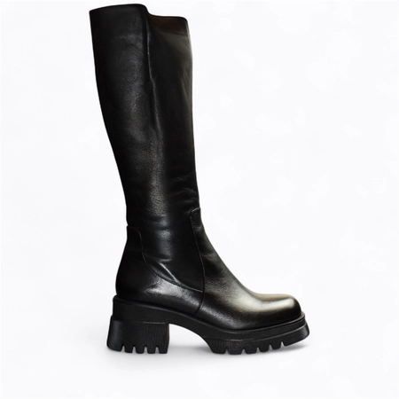 Skórzane czarne kozaki damskie Bemiria