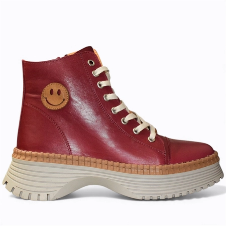 Odkryj nietuzinkowe czerwone trzewiki damskie Omireti, które łączą w sobie wysokiej jakości skórę oraz unikalny design. Te buty są doskonałym wyborem dla kobiety, która ceni sobie zarówno styl, jak i komfort. Dzięki sznurowadłom możesz idealnie dopasować je do swojej stopy, co zapewnia wygodę noszenia na co dzień.