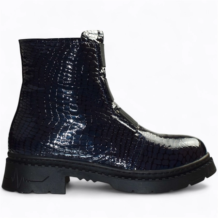 SKÓRZANE GRANATOWE BOTKI DAMSKIE GALENNA