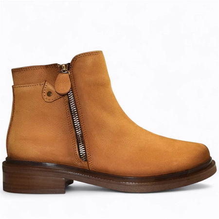 SKÓRZANE RUDE BOTKI DAMSKIE PERLINA