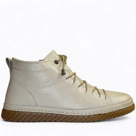 SKÓRZANE BEŻOWE TRZEWIKI DAMSKIE DISMARA