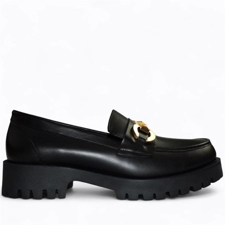 Skórzane czarne półbuty damskie Emarina